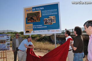 «El pasado 19 de junio, el alcalde de Alhama de Murcia, Juan Romero Cánovas, junto al director general de Patrimonio Natural y Biodiversidad, Pablo Fernández y el Comisario de Aguas de la Confederación Hidrográfica del Segura, Manuel Aldeguer, inauguraron el primer Paso de Fauna para Tejón que se señaliza en la región en la Rambla Celada a su cruce con la N-340.
