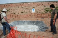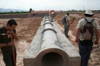 Cada x metros había un lavadero de hormigoneras, agujeros forrados de plástico donde las hormigoneras deben lavar sus depósitos, una solución para que estas no viertan sus desechos por cualquier sitio….pero……que pasa con la fauna que cae en ellos???? no hay otra forma de asegurar que no entren en ellos por accidente??? un vallado mas impermeable??? unas simples rampas???. Pudimos comprobar que habían caído algunos conejos y otros roedores y aunque no se trate de especies amenazadas, también podrían caer tejones, ginetas, etc. No nos damos cuenta de que cualquier cosa que hacemos en el medio tiene sus consecuencias…….pero claro que son unos conejos u otros bichejos ante el «progreso»???? NADA. Creemos que la vigilancia ambiental de las obras, así como la ejecución de medidas correctoras deben realizarse de forma exhaustiva y por personal especializado y no como meras actuaciones para cubrir el expediente mediante un bonito informe y unas fotos adecuadas. En este caso, posiblemente se estén realizando correctamente por ser medidas encaminadas a evitar vertidos de hormigón, pero en contraposición, están teniendo efectos negativos en la fauna, por lo que deberían ser modificadas para subsanar esta deficiencia.