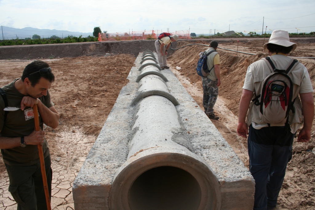 Este sábado con los voluntarios del proyecto Bubo hemos realizado un itinerario por la obra del AVE, tramo de Alhama hasta los bomberos, con el fin de localizar rastros de fauna principalmente mamíferos y ver el impacto que provocará esta infraestructura sobre estos, puesto que serán los más afectados, sin olvidar por supuesto a los propietarios de los terrenos expropiados.El primer impacto que pudimos comprobar es la desaparición de una de las tejoneras o madrigueras de tejón que había cercana a la Rambla Celada, aunque como podéis ver en la foto la lluvia ha vuelto a abrir un par de agujeros, por el contrario pudimos comprobar que los tejones seguían por la zona, por las huellas encontradas, alguno parece que sobrevivió a las máquinas.