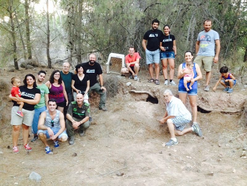 El pasado 3 de septiembre, voluntarios de la Asociación Meles participaron en un acto de suelta de dos jóvenes tejones en el entorno del Parque Regional de Sierra Espuña. Meses antes habían sido localizados junto al cadáver de su madre y posteriormente trasladados a las instalaciones del Centro de Recuperación de Fauna Silvestre en El Valle (Murcia). Este centro se dedica a la recuperación, rehabilitación y suelta de especies que llegan hasta allí con algún daño, o como en nuestro caso, que no pueden valerse por si mismos.