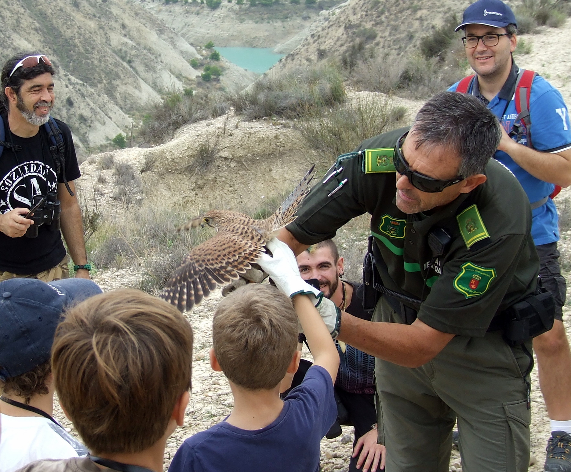 Cada año se desarrolla esta actividad en un entorno diferente y, en esta ocasión, dentro del programa de fiestas de Fuente Librilla, se realizó una Ruta de Aves en esta pedanía. La actividad, en la que participaron 29 personas (adultos y niños), se desarrolló el pasado sábado 3 de octubre y contó también con la colaboración del cuerpo de Agentes Medioambientales de la Región de Murcia. Se realizó un recorrido guiado por las calles de Fuente Librilla y su entorno natural para descubrir sus paisajes y las aves que allí habitan. Como parte de la actividad, se procedió a la liberación de dos cernícalos y dos mochuelos provenientes del Centro de Recuperación de Fauna Silvestre de El Valle.