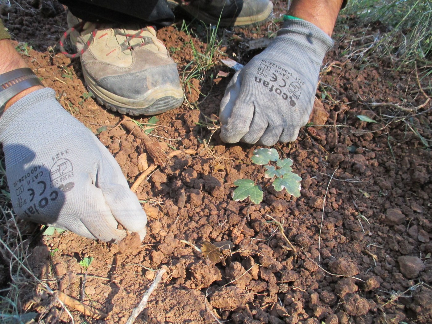 Se introdujeron ejemplares de mostajo (Sorbus aria) y arce de Montpellier (Acer monspessulanum) en las talas superiores de estas instalaciones para recrear así la vegetación que podemos encontrar en las zonas más altas de Sierra Espuña. En estos bancales, además de los individuos plantados en esta actividad, perviven ejemplares de sabina negra (Juniperus phoenicea) introducidos en la anterior plantación. Se procedió a ejecutar un pequeño desbroce en los alrededores de estos ejemplares para eliminar la competencia con otras especies. Y después de la plantación se procedió a darles un riego de asentamiento para que tengan humedad suficiente para pasar el invierno.